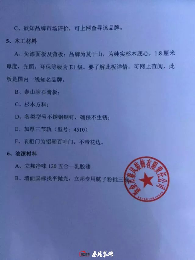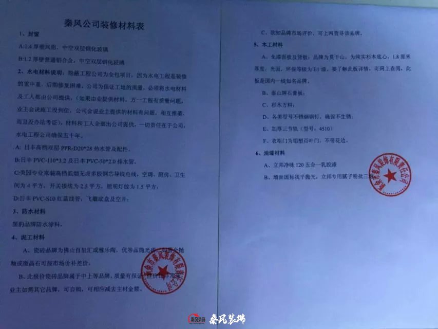 秦風(fēng)裝飾公司的裝修材料單