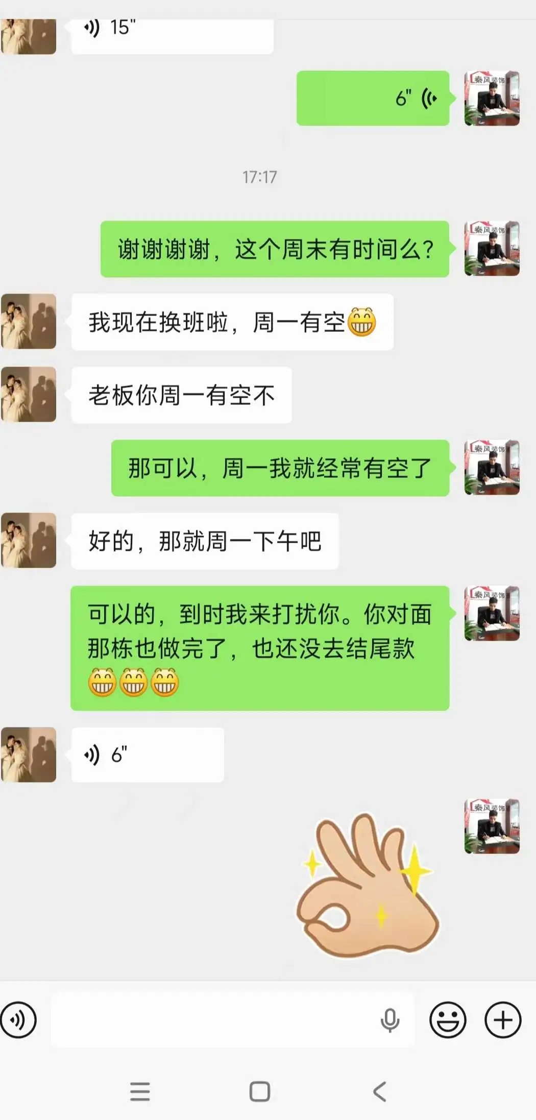 將心比心,我總會主動把尾款的事往后放一放。令人感動的是,往往過不了多久,反而是業(yè)主朋友們主動聯(lián)系我:“秦風,該把尾款結清啦!”